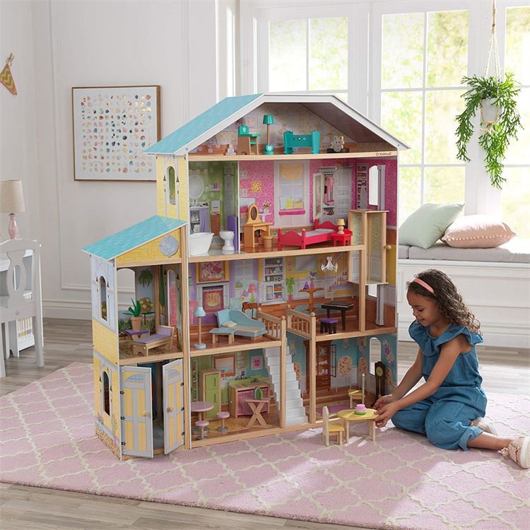 Töltsön órákat a Majestic Mansion Dolls House játékkal. Ez a 136 cm magas kastély 4 emelettel, 8 szobával, egy nagy lépcsővel és egy siklólifttel rendelkezik a gyermek babáinak szállítására. Ez a tágas babaház egy 34-darabbútor-kiegészítő csomagot tartalmaz, ahol a gyerekek órákon át szórakozhatnak a Majestic Mansion felfedezése közben 12-hüvelykes (30-cm) divatos babáikkal.
