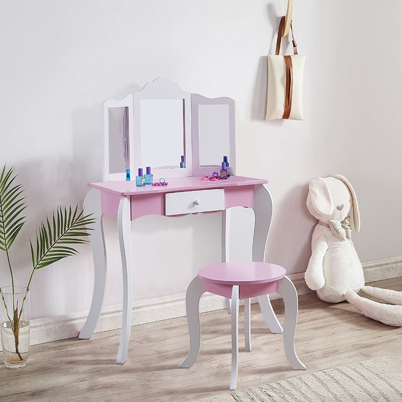 2.A fésülködőasztal a tükör eltávolítása után íróasztalként is használható, mely különféle igényeket tud kielégíteni szórakozás és tanulás során egyaránt.